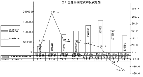 2018年,博乐市固定资产投资累计完成53.96亿元,下降49.8%。其中,第一产业完成投资1012万元,下降93.3%,占全部投资的0.19%;第二产业完成投资20.30亿元,下降2.34%,占全部投资的37.62%;第三产业完成投资33.56亿元,下降60.63%,占全部投资的62.19%。