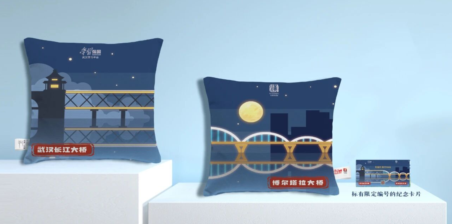 文创产品成为两地情谊的“具象化载体”。“学习强国”武汉学习平台与武汉市援疆办联名推出新疆棉抱枕,设计上融合武汉长江大桥与博乐博尔塔拉大桥、东湖与赛里木湖等地标元素,由博乐本地企业生产,既推广新疆优质棉资源,又以“双城联动·日夜相伴”的创意深化情感联结。博尔塔拉纪念园改造项目更注入荆楚文化内核,使用湖北援博资金200万元,设置曾侯乙编钟展示区,打造“有声园林”,让“国之重器”激发公众对中华文明的认同,同时统一园区标识、改造雕塑,融入博州地方文化符号,使其成为市民网红打卡地与中华文化传播阵地。