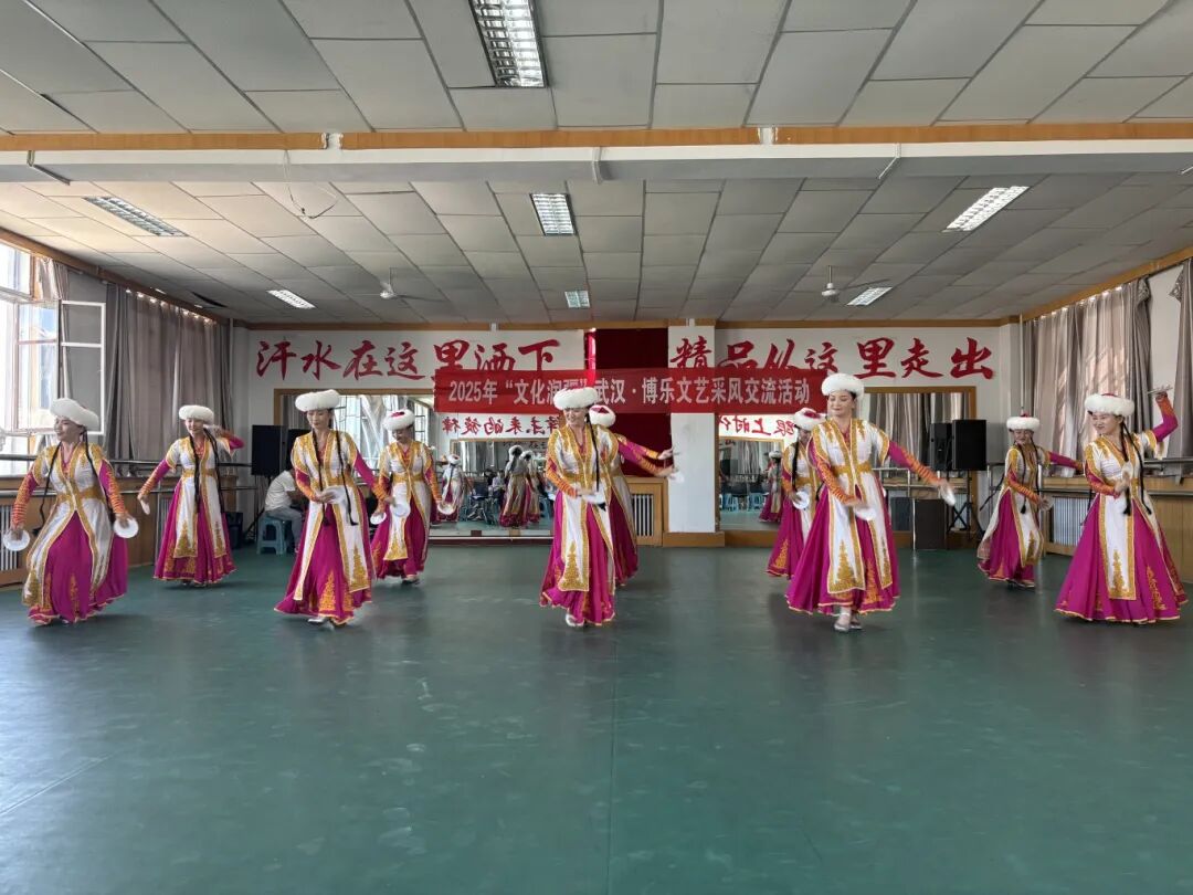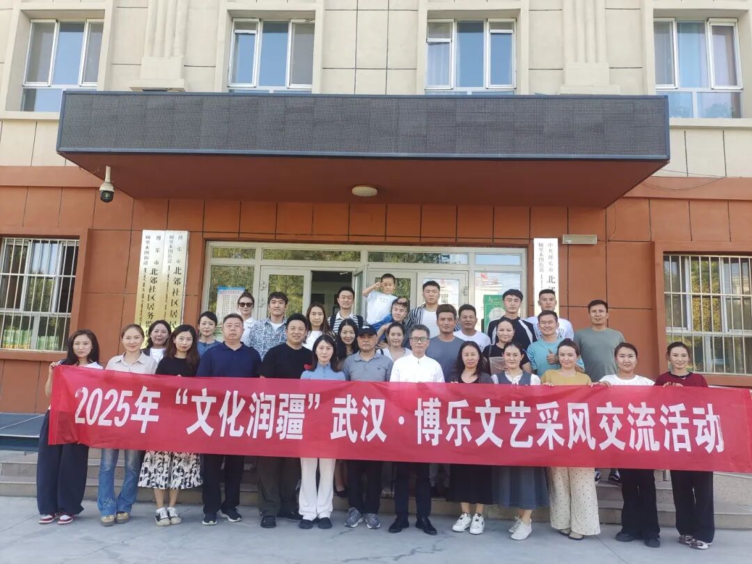 文润博乐,艺脉相连。为深入学习贯彻习近平文化思想和党中央关于文化润疆工作的战略部署,8月22日,武汉市文联组织文艺家赴新疆博乐开展了一系列主题鲜明、丰富多彩的采风交流活动。在10天的时间里,从文化馆演出厅的聚光灯下到其乐融融的社区新村,从音乐交流结对的思想碰撞到古典舞形体训练的无声交流,汉博两地文化在真诚的对话中完成了一次深度融合。此次采风团由武汉市文联副主席、著名二胡演奏家胡志平率队,武汉音乐家协会、武汉舞蹈家协会的文艺家们共同参与了本次采风。