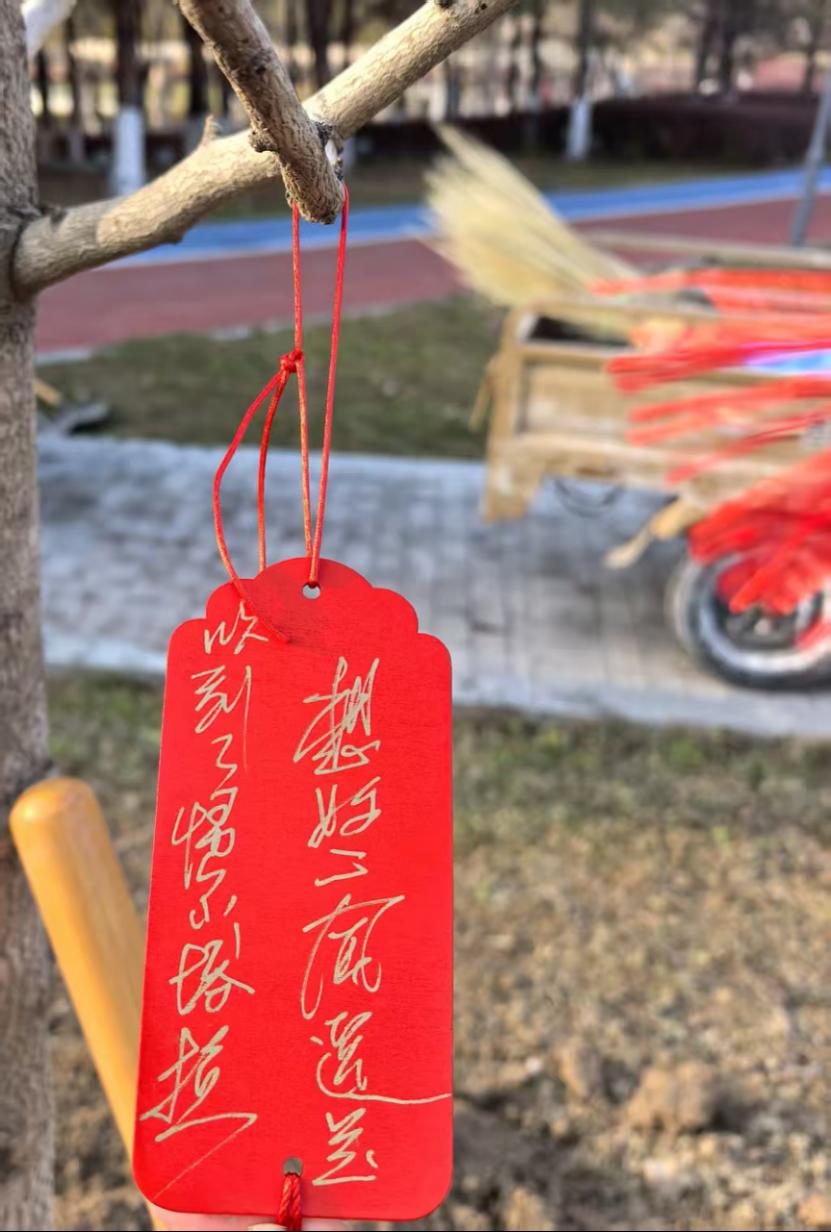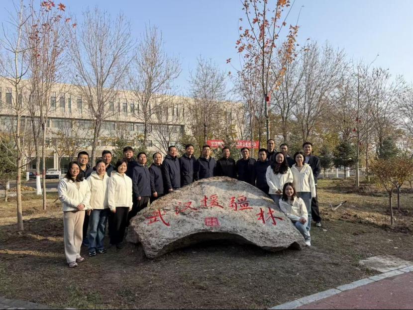 “希望这棵树能和我的孩子一起茁壮成长。”武汉援疆队员严宇将写有心愿的卡片轻轻挂在新栽的银杏树上。不远处,队员们在新落成的“武汉援疆林”景观石前合影留念,笑容与绿意相互映衬,格外温暖。