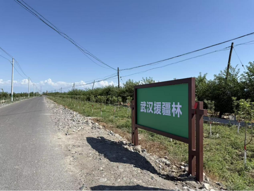 故事要追溯到2013年,第二批武汉援疆队员在此种下了象征希望的云杉,一块朴素的“鄂博友谊林”石碑,悄然播下了友谊的种子。十余年间,这份绿色的约定不断生长、延绵:万亩海棠园里,耐旱的果树已蔚然成林;达勒特镇的孛罗古城旁,点点新绿为厚重的历史增添了盎然生机。