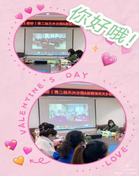 活动开始之前,两个联盟园的老师按照小组进行了简单的介绍,为线上教研的活动拉开了序幕,武汉教师热情地讲解,贝乡幼儿园教师积极地互动,给我们的教研活动起了一个好的开头。