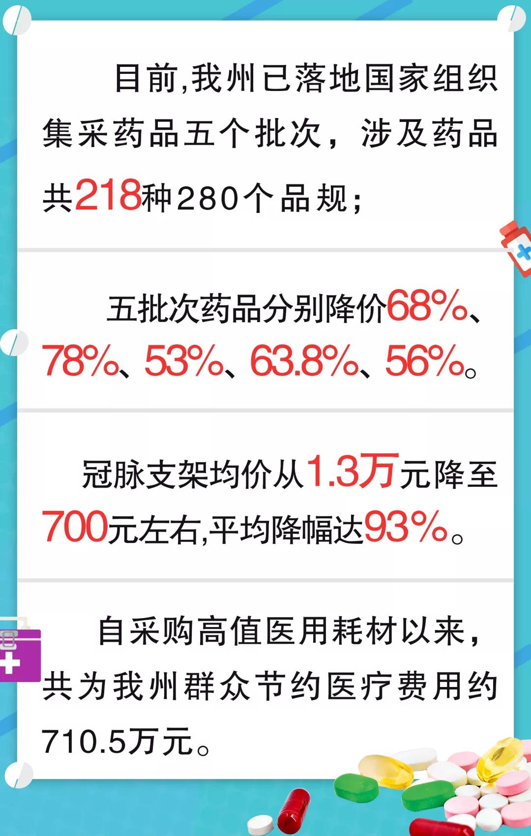 博州目前已落地国家组织集采药品五个批次,涉及药品共218种280个品规,包括冠心病、高血压、糖尿病、消化系统慢性病药,也有肺癌、乳腺癌、结直肠癌等重大疾病用药。博州多家公立医疗机构打通了国家集中采购药品进院渠道,根据诊疗范围和临床使用情况,配备了不同品种中选药品,患者可以到这些医疗机构咨询、就医、开药。五批次药品分别降价68%、78%、53%、63.8%、56%。