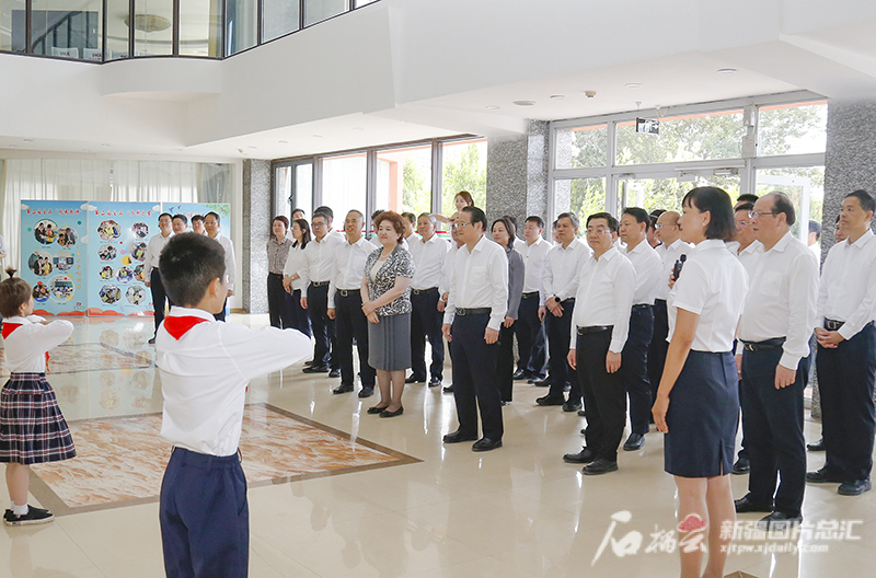 7月19日,浙江省党政代表团在阿克苏地区启明学校详细了解浙阿特殊教育联盟与特殊教育援疆情况。石榴云/新疆日报记者 谢龙摄