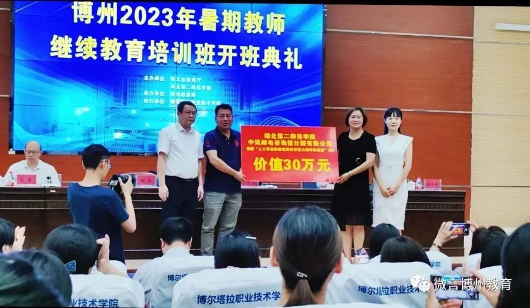 此次送培互访活动中,湖北第二师范学院、中讯邮电咨询设计院有限公司向博乐市第九中学、锦绣小学捐赠“人工智能助推教师教学能力测评实验室”2间,给两所学校送来了先进技术,为通过现代化手段提升教师课堂教学能力,助力教育高质量发展提供帮助。