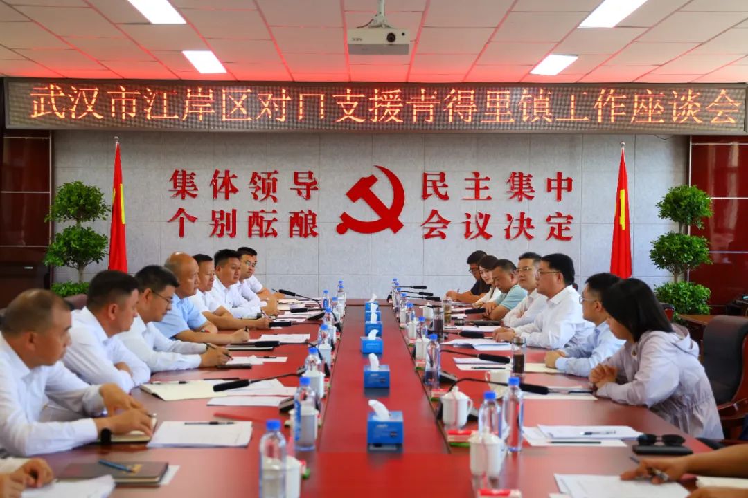 会上,江岸区党政领导代表团听取了青得里镇经济社会发展情况及受援情况等内容汇报,双方就对口支援工作开展情况及下一步工作思路进行了深入交流。