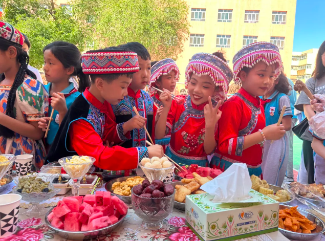 建始县民族小学师生与博乐市第一小学师生共度六一,通过开展“结对子”“手牵手”等交流活动,促进两地师生的交往交流交融,让铸牢中华民族共同体意识深深扎根在两地学子心中。此外还在边境上开展了爱国戍边红色教育,铸牢爱国心、中华魂。