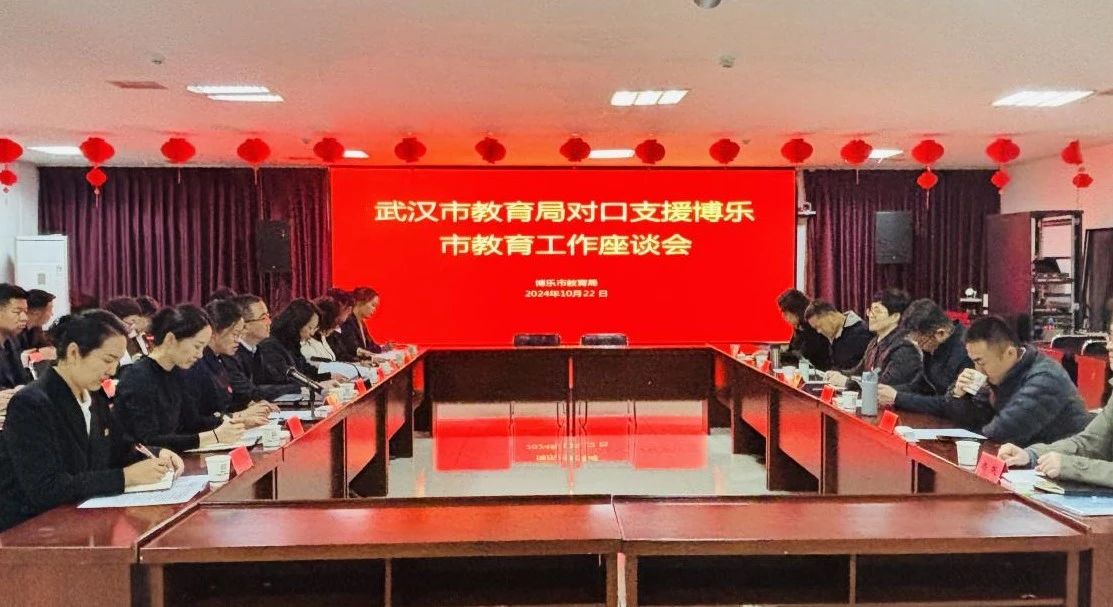 座谈会上,博乐市委常委、组织部部长、党校校长、教育工委书记凡志彬对武汉教育代表团的到来表示热烈欢迎,对武汉市教育局长期以来对博乐市教育事业支持表示感谢。博乐市委教育工委副书记、市教育局党组成员、局长(援疆)陈赤男就近三年教育援博工作进行总结汇报。