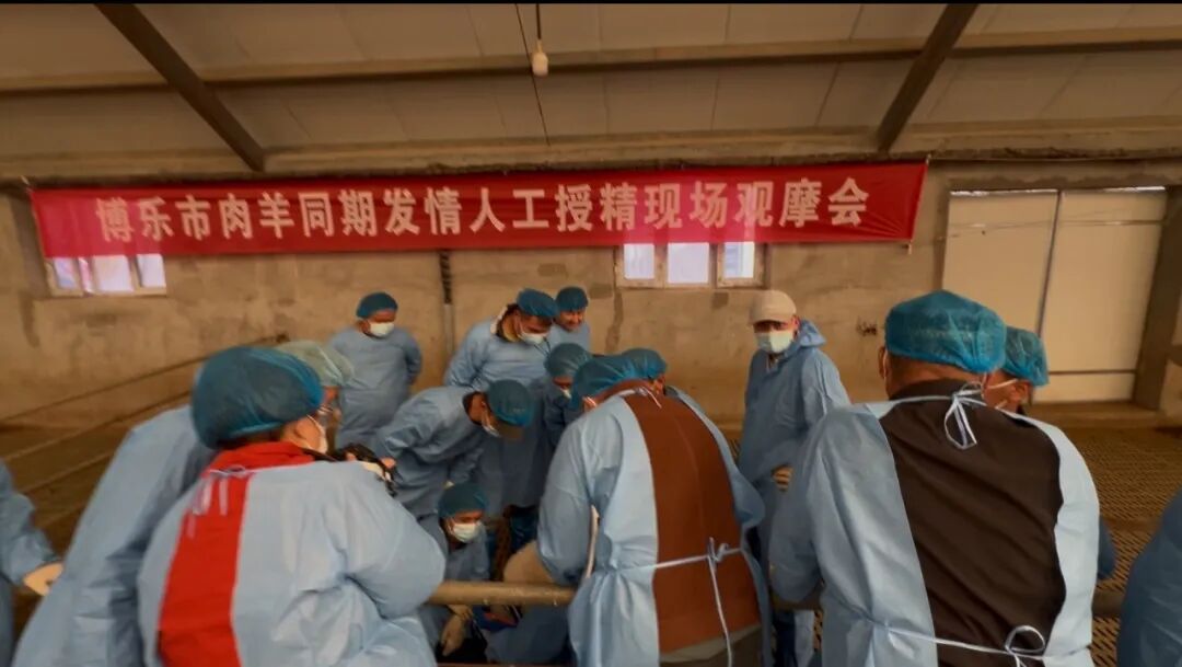 而此次观摩会重点推广的肉羊同期发情与人工授精技术,正是针对这些痛点“量身定制”的解决方案。现场,来自昌吉市和喀什地区的专家先用通俗的语言讲解技术原理,“通过科学注射调控药物,能让原本分散发情的母羊在12天左右集中进入发情期,之后统一使用优质种公羊精液进行人工授精,既解决了发情不集中的难题,又能精准提升配种质量。”讲解结束后,技术人员身着专业防护服,手持授精器械,一步步演示操作流程,每个步骤都细致讲解,还特意提醒养殖户授精时要做好器械消毒,确保操作规范。