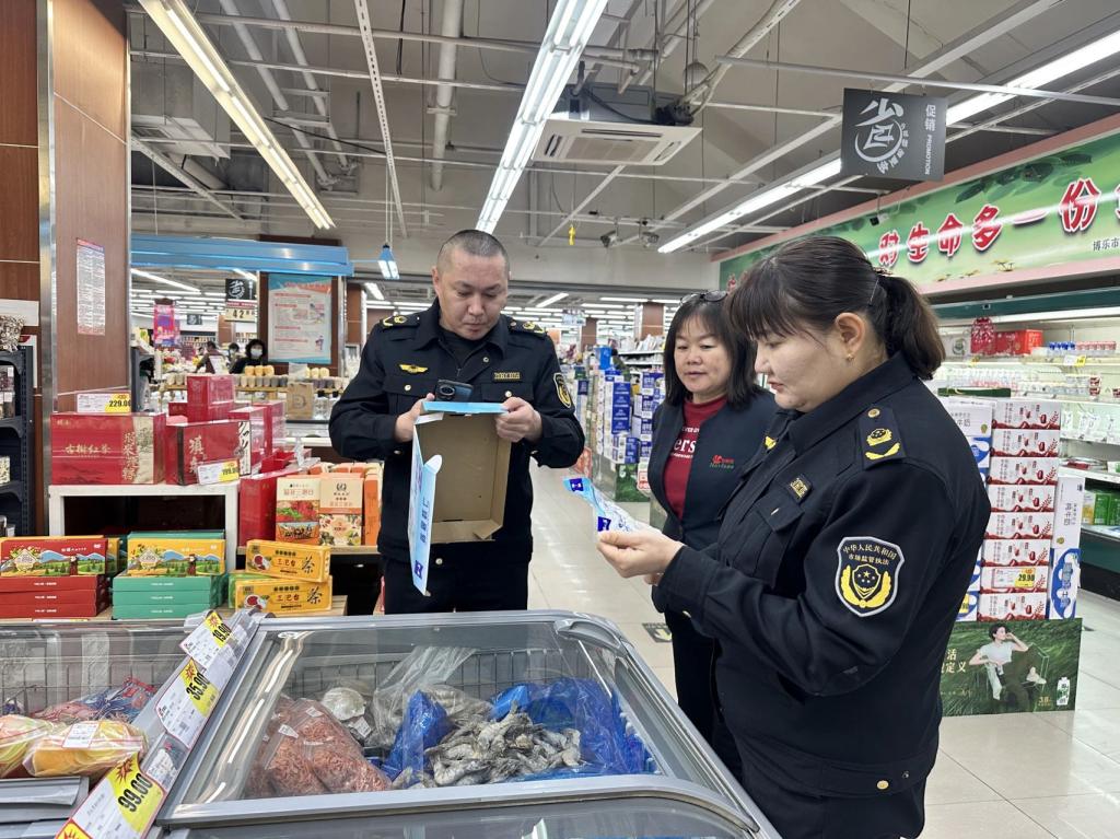 自3月16日起,执法人员对辖区内水产品冷链仓储、批发零售单位、餐饮单位开展全覆盖检查(辖区内区无水产品生产加工企业),重点检查是否经营涉事企业生产虾仁,核查进货查验义务履行情况。执法人员认真检查了相关经营商户营业执照、产品进货台账、购进票据及产品合格证明文件等。