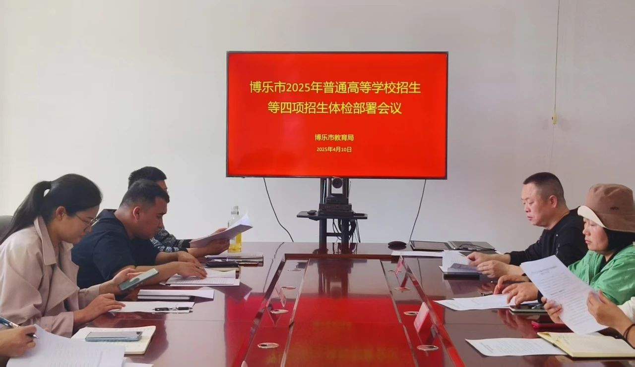 4月10日下午,博乐市2025年普通高等学校招生体检工作部署会议在市教育局召开,博乐市教育局、市人民医院有关负责人及博乐市辖区内所有高中学校、阿拉山口市中学负责人参加。