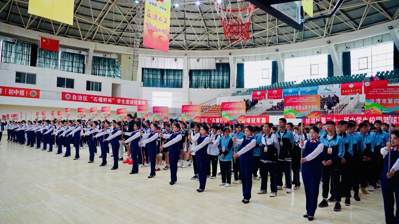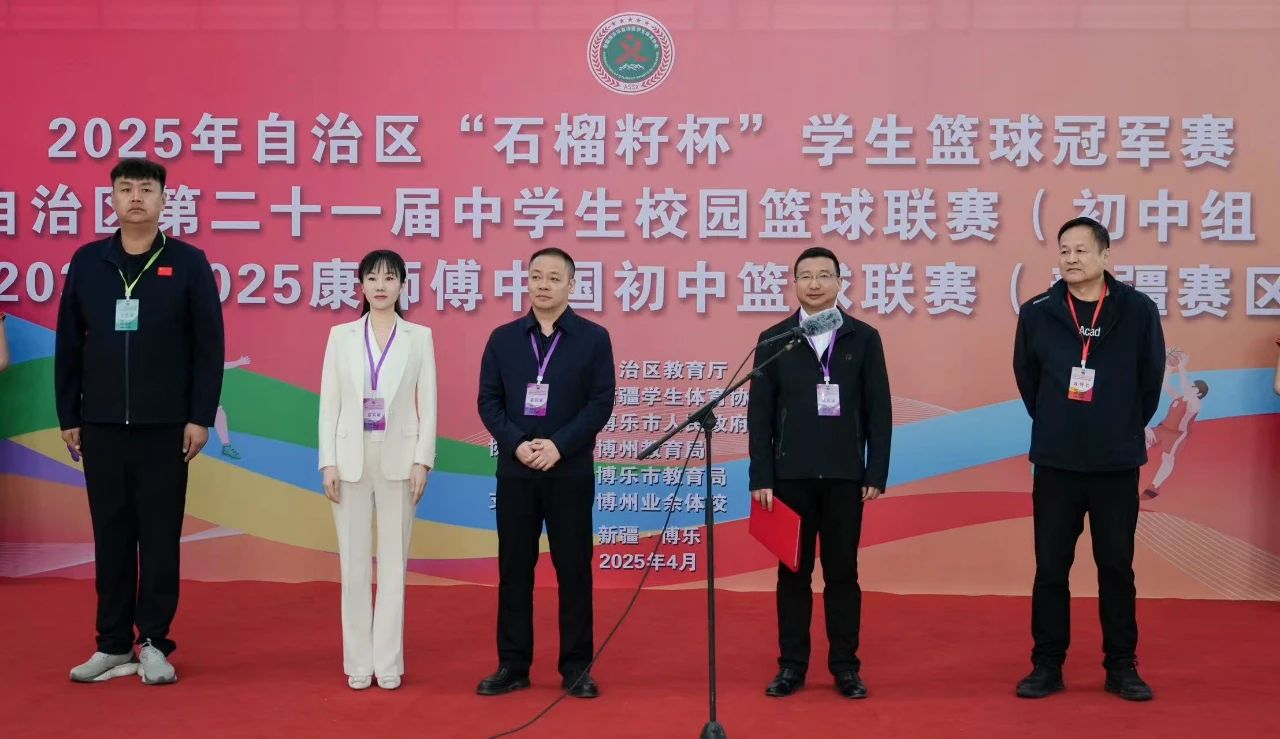 4月23日,由自治区教育厅主办、新疆学生体育协会执行,博乐市人民政府承办、博乐市教育局协办的2025年自治区“石榴籽杯”学生篮球冠军赛、自治区第二十一届中学生校园篮球联赛(初中组)暨2024—2025康师傅中国初中篮球联赛(新疆赛区)在博州业余体校激情开幕!本次比赛吸引了12个地州23支队伍、300余名运动员,领队、教练员60余人踊跃参与,自治州教育局、博乐市人民政府、市教育局相关领导和负责同志出席开幕式。