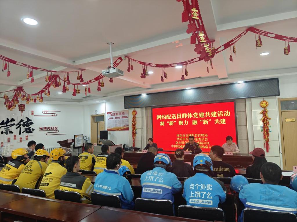 4月18日,博乐市市场监督管理局联合博乐市克尔根卓街道、博乐市卫生健康委员会、农业银行及多家网约配送平台及骑手,在光博苑社区党群服务中心联合开展《凝“新”聚力 融“新”共建》党建共建活动。此次活动以深化党的先进理论学习、推动新兴领域党建工作为核心,旨在搭建多方协同服务平台,切实解决新业态劳动者急难愁盼问题,凝聚行业发展合力。