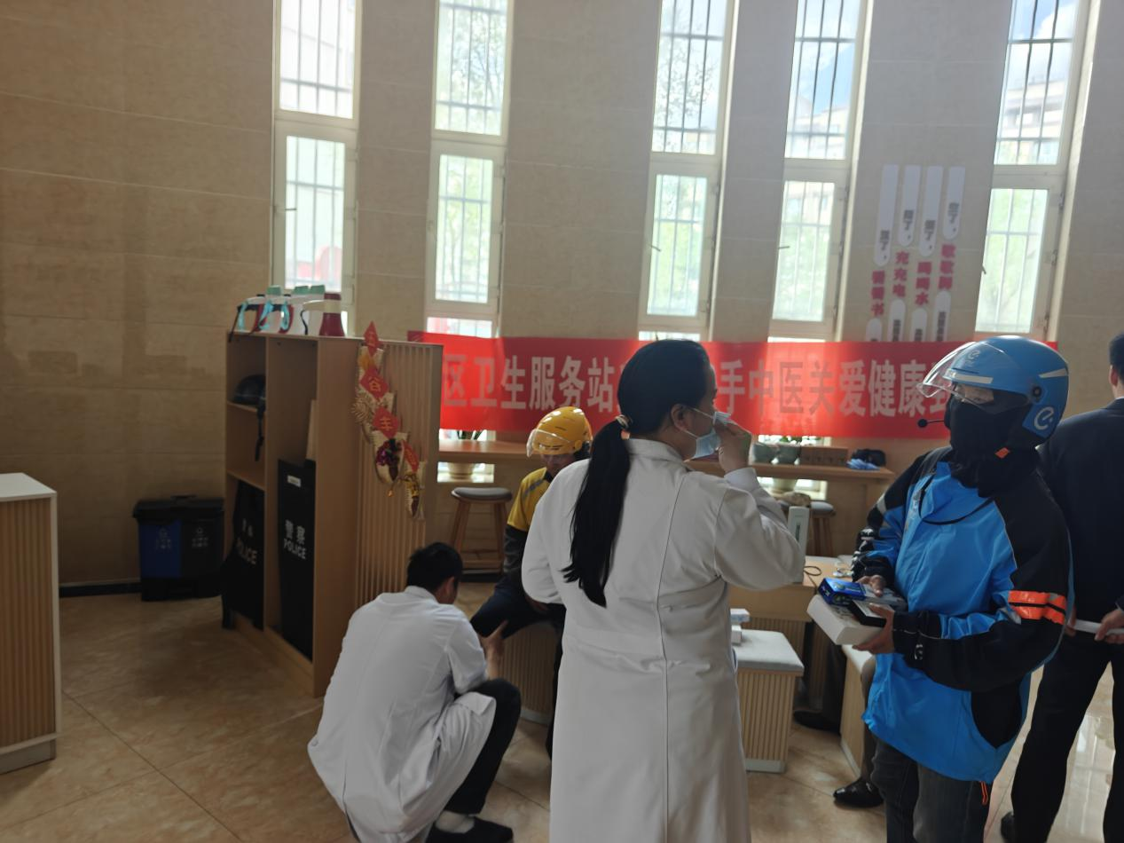 活动期间博乐市卫健工委同步组织开展了新就业群体健康义诊活动,为外卖骑手把脉问诊、中医推拿、测量血压、普及日常保健、健康饮食等相关知识。同时,针对职业特点、季节特点,讲解容易出现的各种疾病及健康隐患,给予医疗建议和健康指导,引导外卖骑手增强健康意识,培养良好的健康生活习惯。