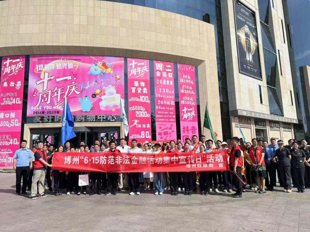 2025年6月是全国第十三个防范非法金融宣传月,为提高广大市民对非法金融防范意识和识别能力,确保人民群众财产安全,6月13日州、市财政局会同成员单位、第五师财政局、金融机构及保险公司共32家单位在博乐友好时尚购物中心门前开展“6·15”防范非法金融集中宣传日活动。
