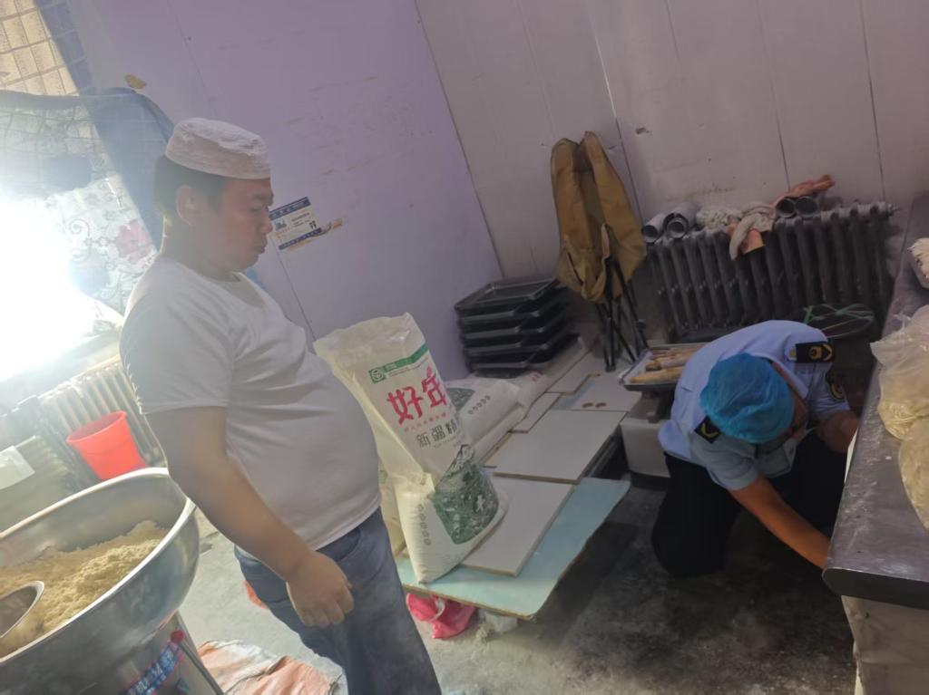 执法人员以提供自制面制品的餐饮服务单位为重点检查对象,深入排查食材采购、储存、加工全流程风险点。重点核查面粉、油脂等原材料采购索证索票制度落实情况,确保来源可追溯、质量有保障;严格检查食品添加剂使用管理,核实是否执行“五专” 制度(专人采购、专人保管、专人领用、专人登记、专柜保存),严查加工环节是否违规使用增白剂、膨松剂等添加剂,坚决杜绝非食品原料流入加工环节;同步检查食材储存环境是否达标、标签标识是否规范,严防过期变质食材进入加工环节;此外,对餐品加工卫生规范、餐饮具消毒流程等关键环节进行全面细致检查,为群众饮食安全筑牢第一道防线。