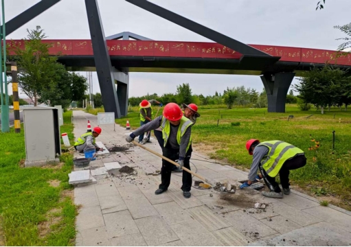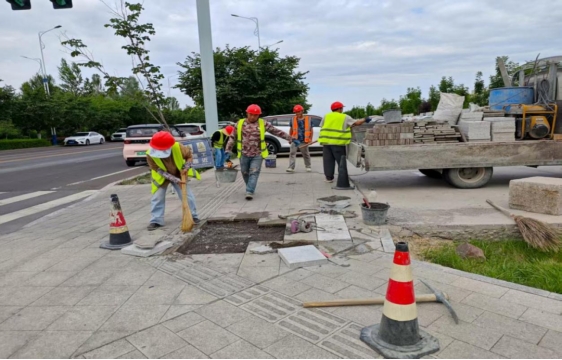 在排查阶段,工作人员对主次干道人行道进行全面巡查,详细记录行道砖破损位置、面积及损坏程度,建立问题台账,制定针对性修复方案。施工过程中,采用“拆除破损砖体一清理基层杂物一平整夯实基底一铺设新砖”的标准化流程,确保修复后的人行道平整稳固。同时,合理安排施工时段,设置安全警示设施,减少对市民通行的影响。