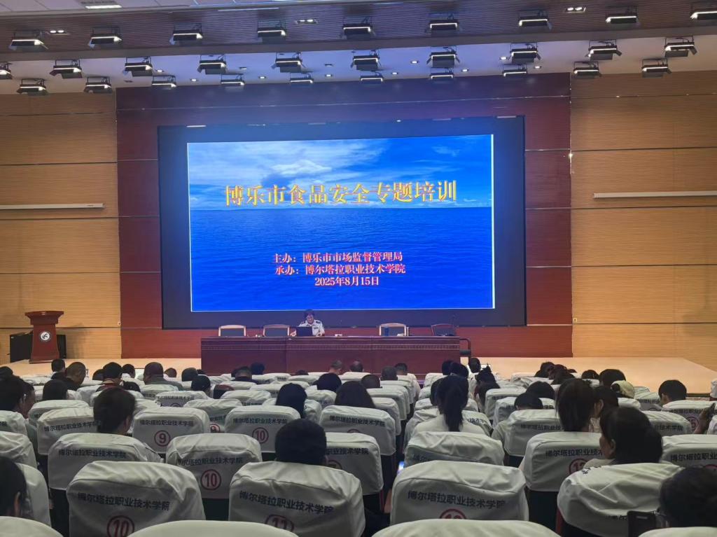 为深入学习贯彻习近平总书记关于食品安全的重要论述,进一步提升大型餐饮服务单位、集中用餐单位食品安全主体责任意识和食品安全管理人员履职能力,保障好人民群众“舌尖上的安全”。2025年8月15日,博乐市市场监督管理局组织辖区内宾馆、酒店等大型餐饮服务单位及养老福利机构食堂、工地食堂、医院食堂、托管托教机构等集中用餐单位负责人和食品安全管理员等共计约280人参加了此次培训。