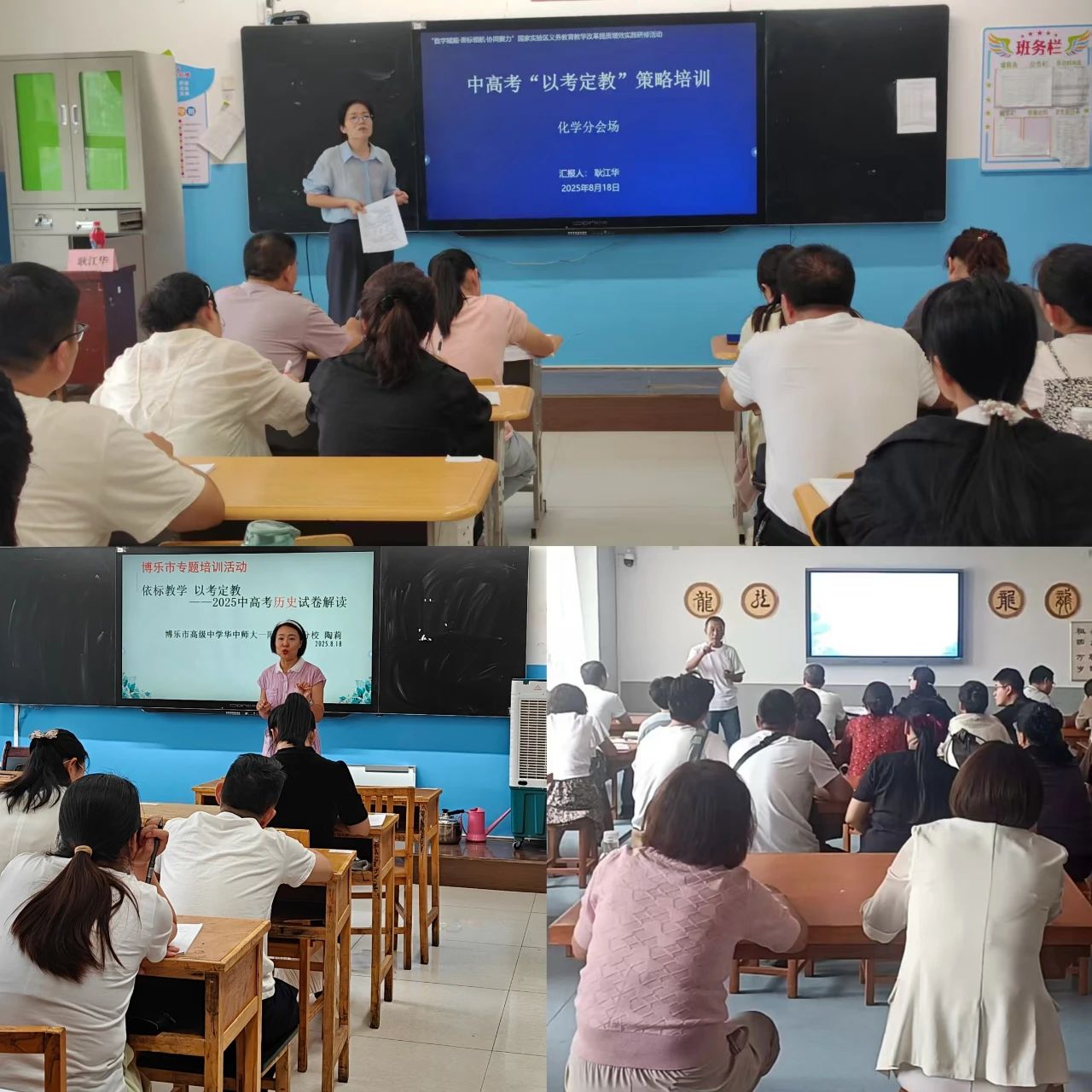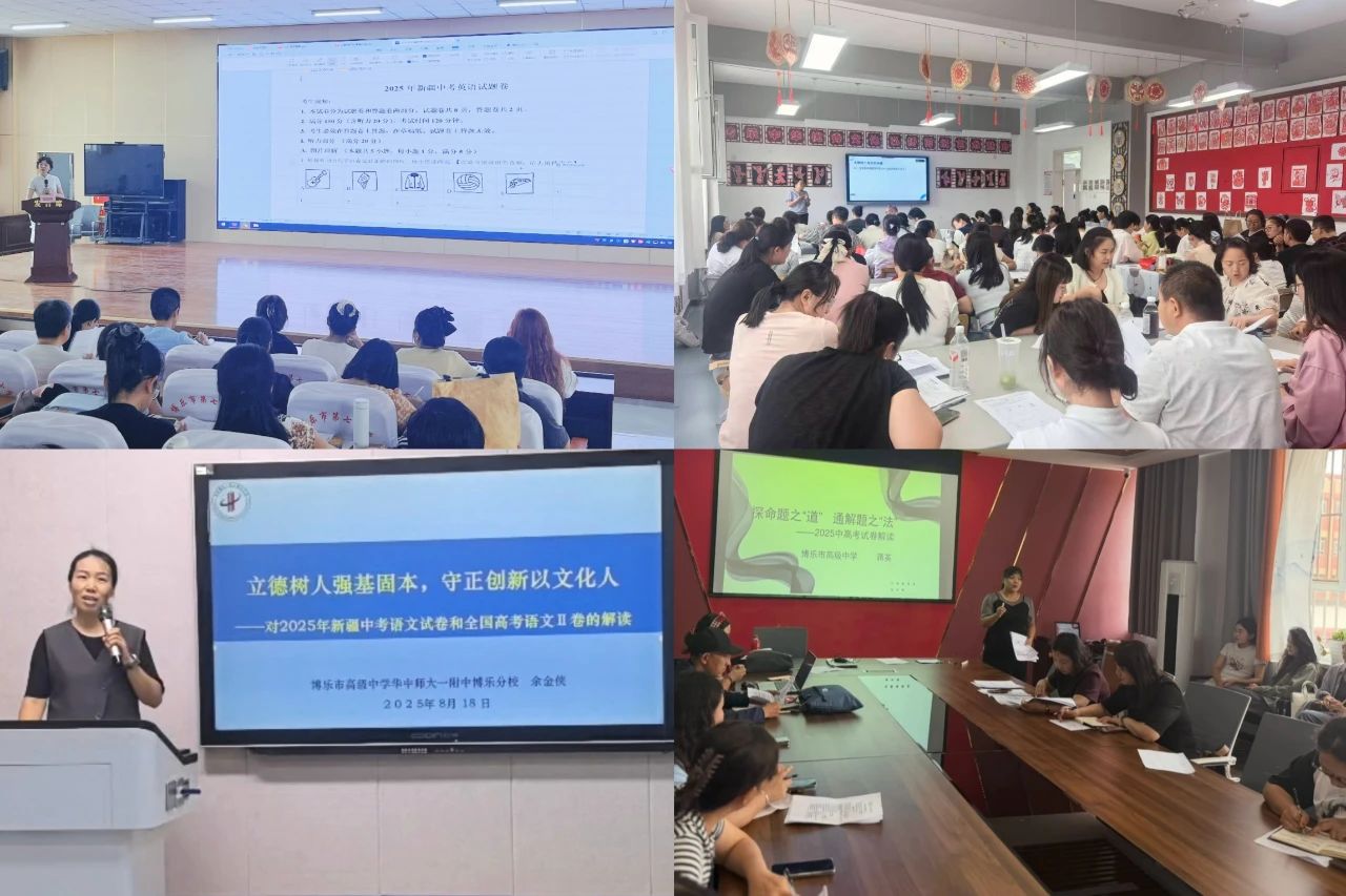 18日下午,博乐市教育教学研究中心副主任张晓玲解读了《博乐市义务教育教学改革国家实验区三年行动计划(2024-2027年)》,为未来改革明确方向。紧接着,语文、数学等七个学科分会场同步开讲,张晓玲与华中师大一附中博乐分校的6名高中教师,紧扣2025年中高考试题,详解“以考定教”策略,从命题趋势到分层训练方法,手把手助力教师打通教学与考试的衔接堵点。