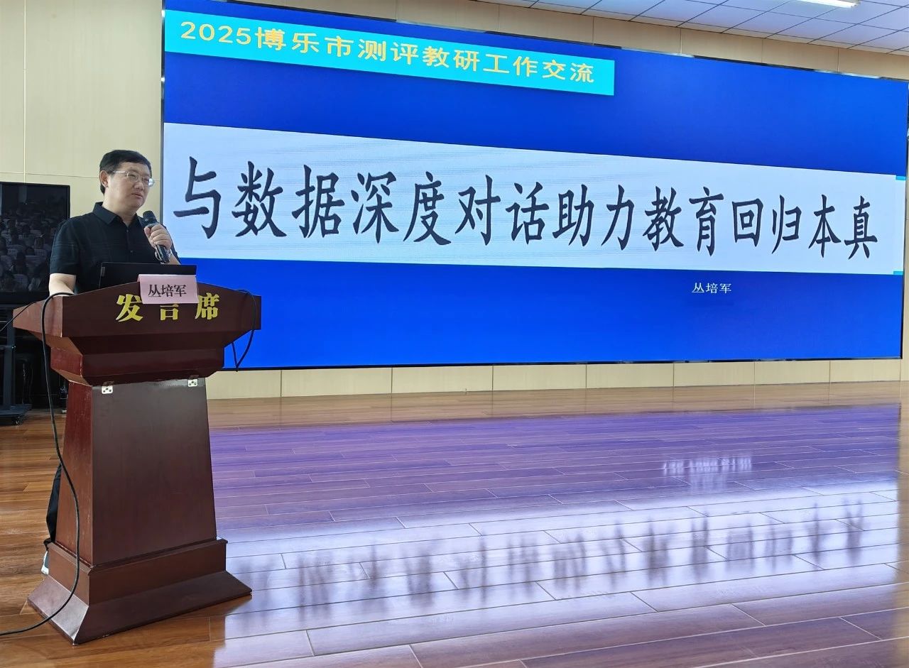 18日上午,特邀质量监测与评价专家丛培军老师以博乐市2025年7月期末学业质量数据为依据,结合国家质量监测标准,深入剖析了博乐市教育发展现状,为后续教学改进画出“路线图”。随后的优秀学校表彰环节中,王娟为获奖学校颁奖并强调,要以表彰为契机,持续深耕教学改革,完善质量评价机制,让每一份努力都转化为学生成长的动力。