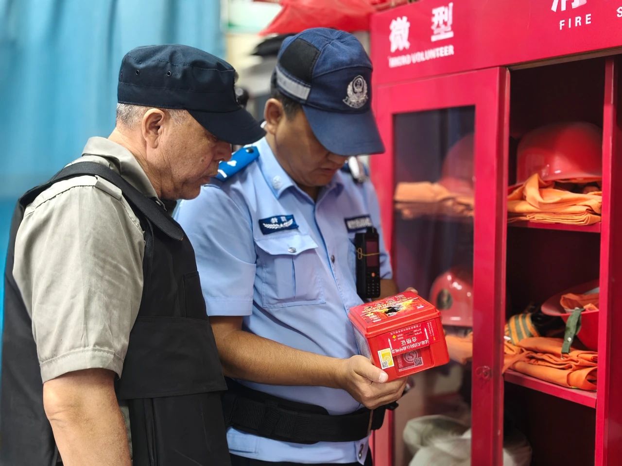 校园内部细查设施,筑牢“硬核防线”“报警器不仅要能响,更重要的是要与派出所实现联网,这样才能确保在突发情况发生时,我们能够第一时间响应。” 检查现场,民警认真操作着报警器,仔细确认信号传输是否畅通无阻。8月21日,博乐市公安局青得里街道派出所民警与学校安保负责人携手组成检查组,对辖区内的中小学、幼儿园的内部安全展开“地毯式”的全面排查。此次排查重点关注教学楼的应急照明、疏散指示标志是否完好,灭火器是否在有效期内。同时,民警逐一对校园内的视频监控覆盖范围、一键式报警器进行严格测试,确保校门口、操场、楼梯拐角等关键区域不存在监控死角。此外,还仔细查看了保安人员的值班记录、器械配备情况,并详细询问了应急处置流程。针对两名新入职的保安,民警现场耐心演示了防暴盾牌的使用方法,并着重强调:“遇到突发情况,一定要第一时间报警并及时疏散学生。”