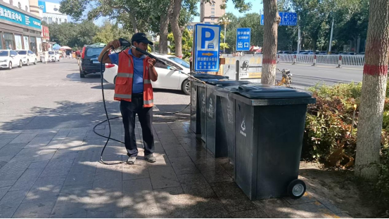 严格落实夏季垃圾清运车辆及垃圾容器清洗消杀常态化管理,对街面垃圾桶开展冲洗、消杀,防止细菌及蚊蝇滋生;清运车辆每日收车后对车体进行全面清洗消杀,保持车辆箱体、垃圾容器等洁净,无异味。