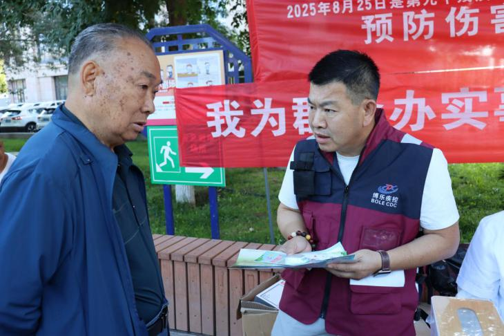 2025年8月25日是第九个“全国残疾预防日”。为深入贯彻落实关于残疾预防工作的决策部署,加强残疾预防宣传教育,增强全社会残疾预防意识,博乐市疾病预防控制中心(卫生监督所)联合基层医疗机构,围绕“预防伤害致残,共创健康生活”主题,开展了“全国残疾预防日”健康教育宣传活动。