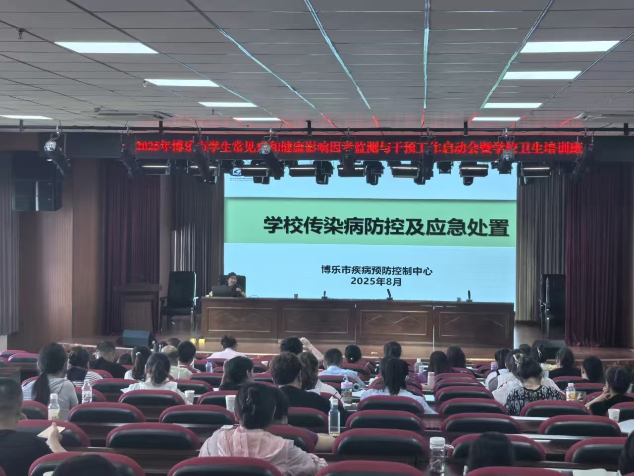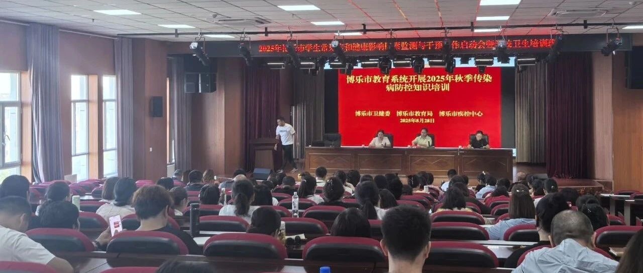 秋季是各类传染病高发频发的时期,为切实做好博乐各中小学校、幼儿园传染病防控工作,8月28日,博乐市教育局联合博乐市卫健委、博乐市疾控中心开展了博乐市教育系统2025年秋季传染病防控培训,各中小学校、幼儿园分管领导、健康副校长、校医(保健医)110余人参加。