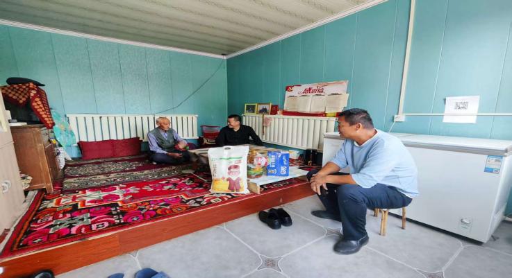 “最近血压控制得怎么样?药品还够吃吗?”在包联村队呼和布热村老人努拉孜巴依家中,候家如书记一行与老人促膝交谈,仔细询问其身体状况、生活起居及实际困难,认真记录群众诉求。亲手递上慰问物资,鼓励道:“生活中遇到任何困难都要及时反映,党和政府始终牵挂着大家,我们会全力帮助解决实际问题,日子一定会越过越好。”朴实的话语让群众深受感动,连连感谢党和政府的关怀。此次慰问共走访困难家庭7户、退休老干部1户,发放慰问物资价值2000余元。
