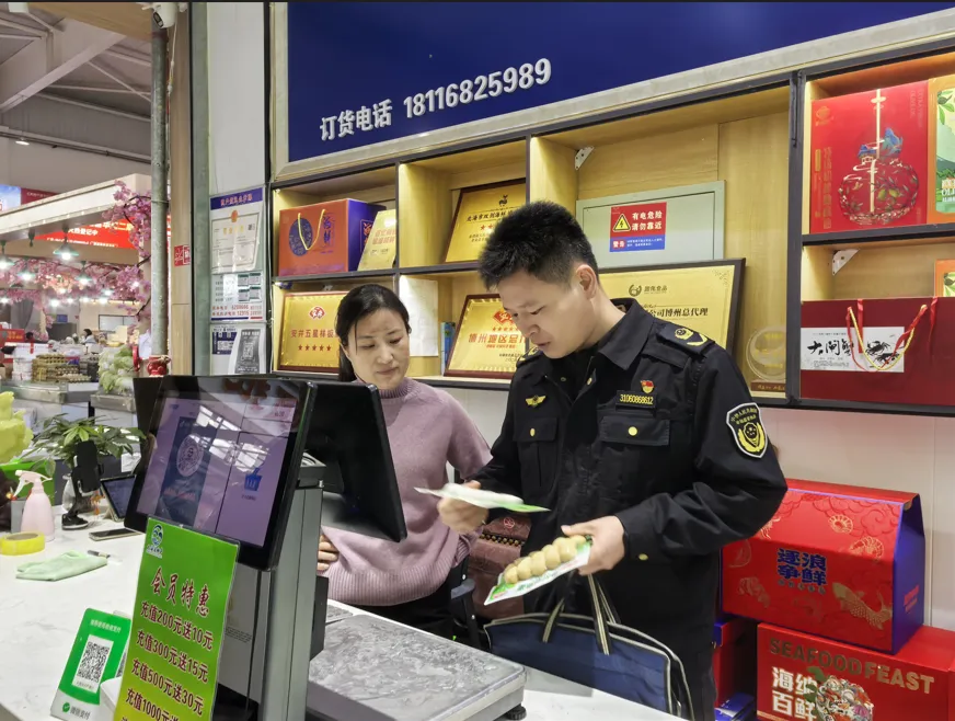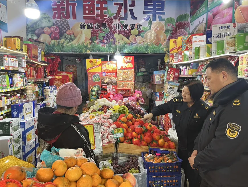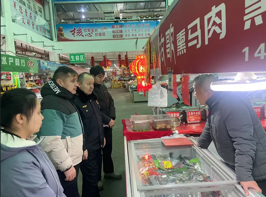 春节临近,为解决人民群众关心的“关键小事”,进一步规范农贸市场经营秩序,着力打造让群众放心的农贸集市市场,2025年1月7日博乐市市场监督管理局对辖区内农贸市场进行了一次“全面体检”,确保群众的“菜篮子”整洁干净、舒适卫生。此次专项行动旨在明确责任划分,细化工作任务,努力营造规范有序、干净整洁的市场环境。主要针对市场的环境卫生、经营秩序、食品安全、计量器具、假冒伪劣、三无产品及无证经营等情况进行检查。