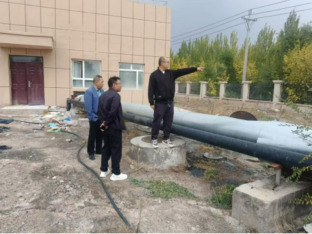 在现场察看过程中,福华涤棉实业有限公司一方面引导工作人员实地查看厂区周边管网布局,详细指认管网走向及关键节点;另一方面公司负责人主动向工作人员说明日常排水管理情况,包括排水频次、近期排水异常现象等关键信息。经核查,明确路面沉陷主要由企业化粪池堵塞导致水管排水不畅、水管受压破损引发路面沉陷等多方面原因导致。