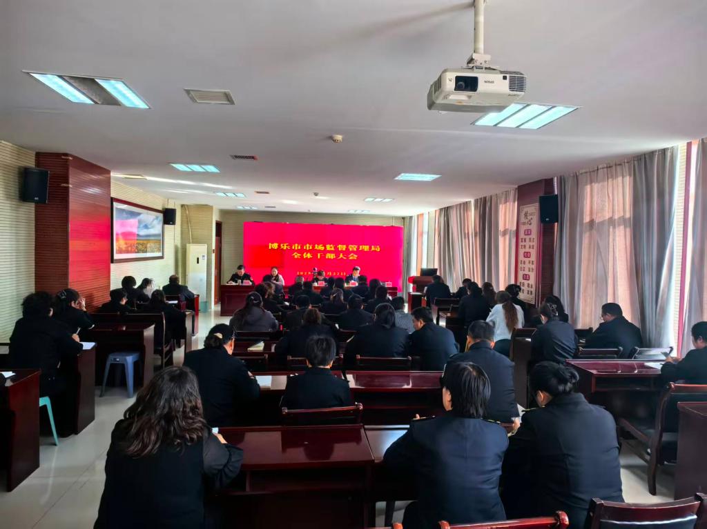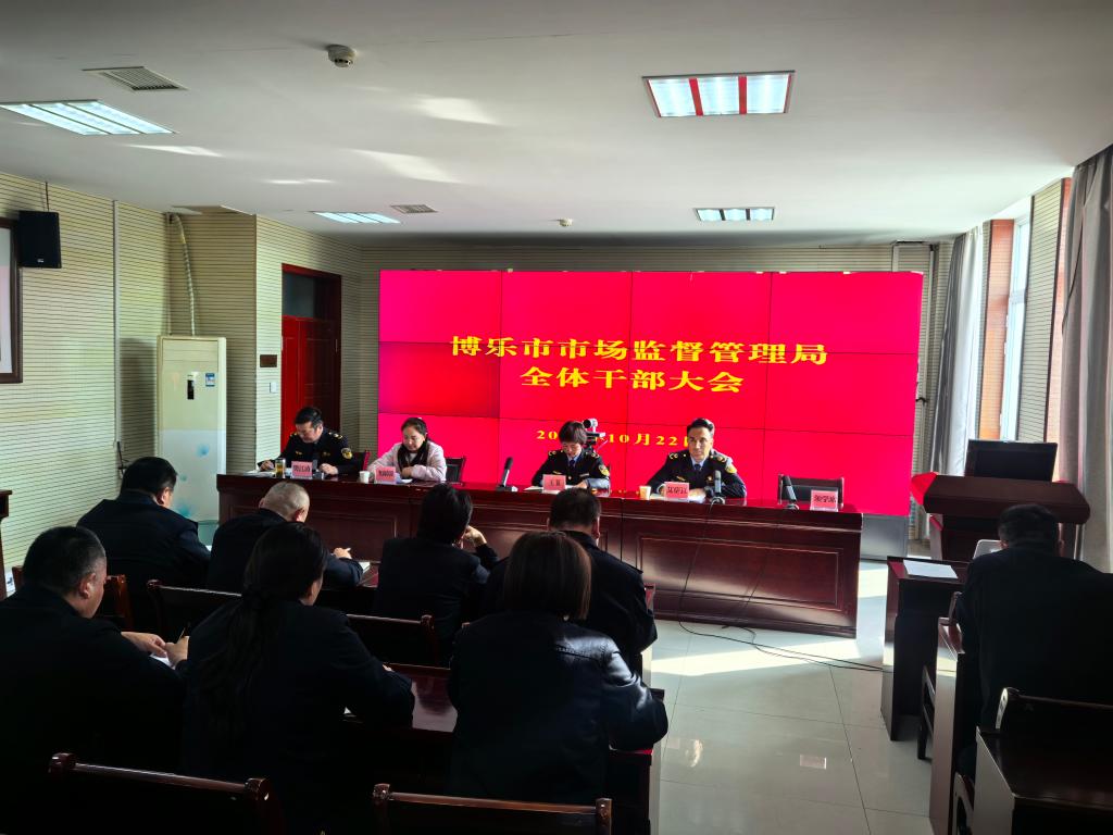 10月23日,博乐市市场监督管理局召开干部大会。会议由党组成员、局长艾萨江·伊力哈木江主持,博乐市纪委第四纪检组组长奥茵其其格应邀参加。会议涵盖集中学习、州市会议精神传达、专题培训三类议程,旨在持续强化学习型机关建设和依法提升本局的工作效能和行风建设水平。