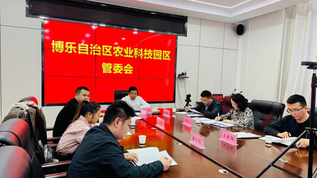 10月30日,博乐自治区农业科技园区通过视频形式接受自治区科学技术厅组织的建设期满验收答辩。博乐市委常委、市人民政府党组成员、副市长、园区管委会主任温荣及管委会成员单位相关领导参加答辩。