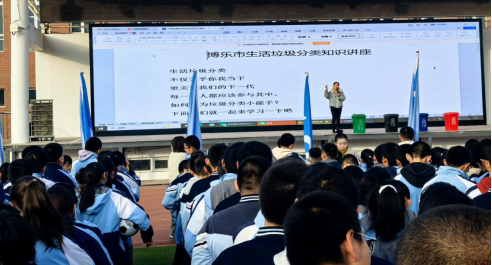 11月13日,博乐市住房和城乡建设局市容环境卫生服务中心垃圾分类宣传队走进博乐市第九中学,为师生们带来了一场生动有趣、干货满满的垃圾分类知识宣讲活动。