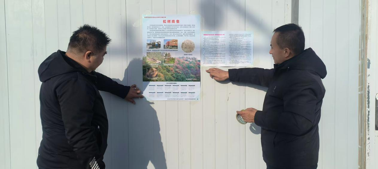 在严格检疫执法的同时,市林草局坚持“检疫+宣传”同步推进,着力构建群防群控格局。技术人员向木材经营加工企业负责人及从业人员宣传《植物检疫条例》《生物安全法》等法律法规,详细解读松材线虫病等重大林业有害生物的传播途径、危害后果及防控要点,明确企业防控主体责任。此次行动共发放并张贴松材线虫病防控知识、植物检疫法规等宣传单30余份,有效提升了经营主体主动防疫意识和守法合规意识,营造了“人人参与、共治共享”的良好氛围。