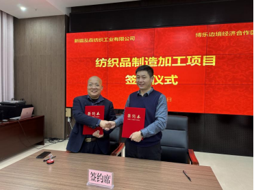 11月29日,博乐边境经济合作区管理委员会与新疆泓森纺织工业有限公司正式签署“博乐边境经济合作区纺织品制造加工项目”投资协议,标志着该项目进入实质性推进阶段,将为博乐市纺织服装产业高质量发展注入新动能。