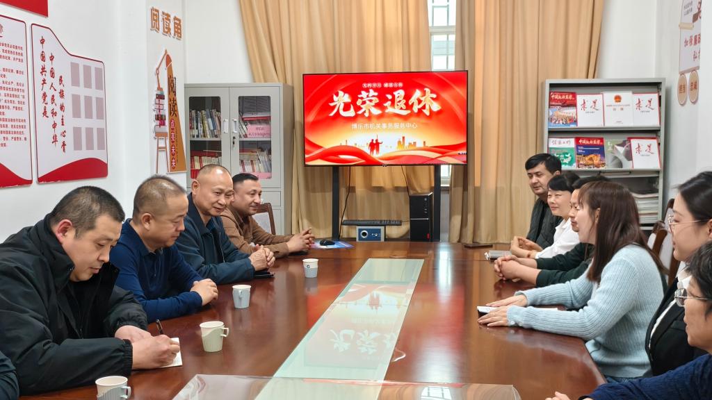 3月11日,博乐市机关事务服务中心洋溢着温馨与感动的气氛,一场简朴而隆重的干部职工荣誉退休仪式正在举行,欢送光荣退休的同志。中心党支部书记、主任,相关科室负责人及部分职工代表齐聚一堂,共同见证这一难忘时刻。