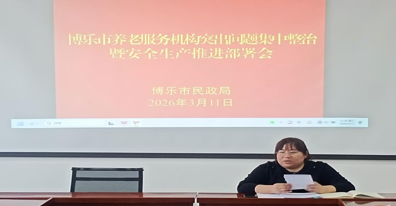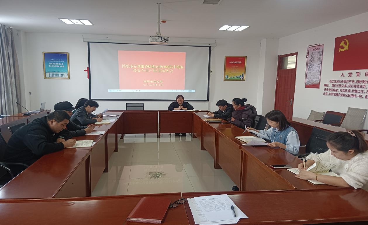 博乐市民政局党组高度重视,于2026年3月11日上午组织召开“两会”之前安全生产工作推进部署会议,专题学习习近平关于安全生产重要论述等资料,进一步压紧压实服务机构安全生产主体责任,加大全国“两会”期间民政服务机构安全风险管控和隐患整改工作力度。