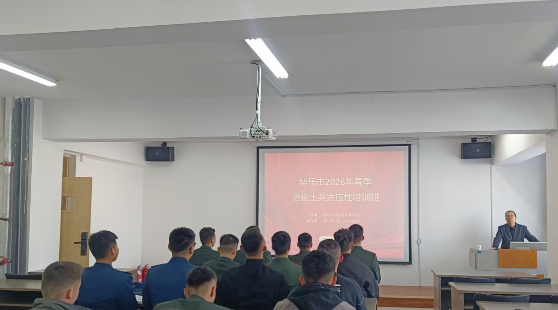 3月19日,博乐市2026年春季自主就业退役士兵适应性培训在博尔塔拉职业技术学院开班,16名春季返乡自主就业退役士兵齐聚于此,培训采用“集中授课+政策解读+案例分享+互动答疑+现场对接+线上补学”的方式开启。博乐市退役军人事务局党组书记古丽拜克热木·阿布力米提出席开班仪式,共同为退役士兵角色转换、就业创业保驾护航。