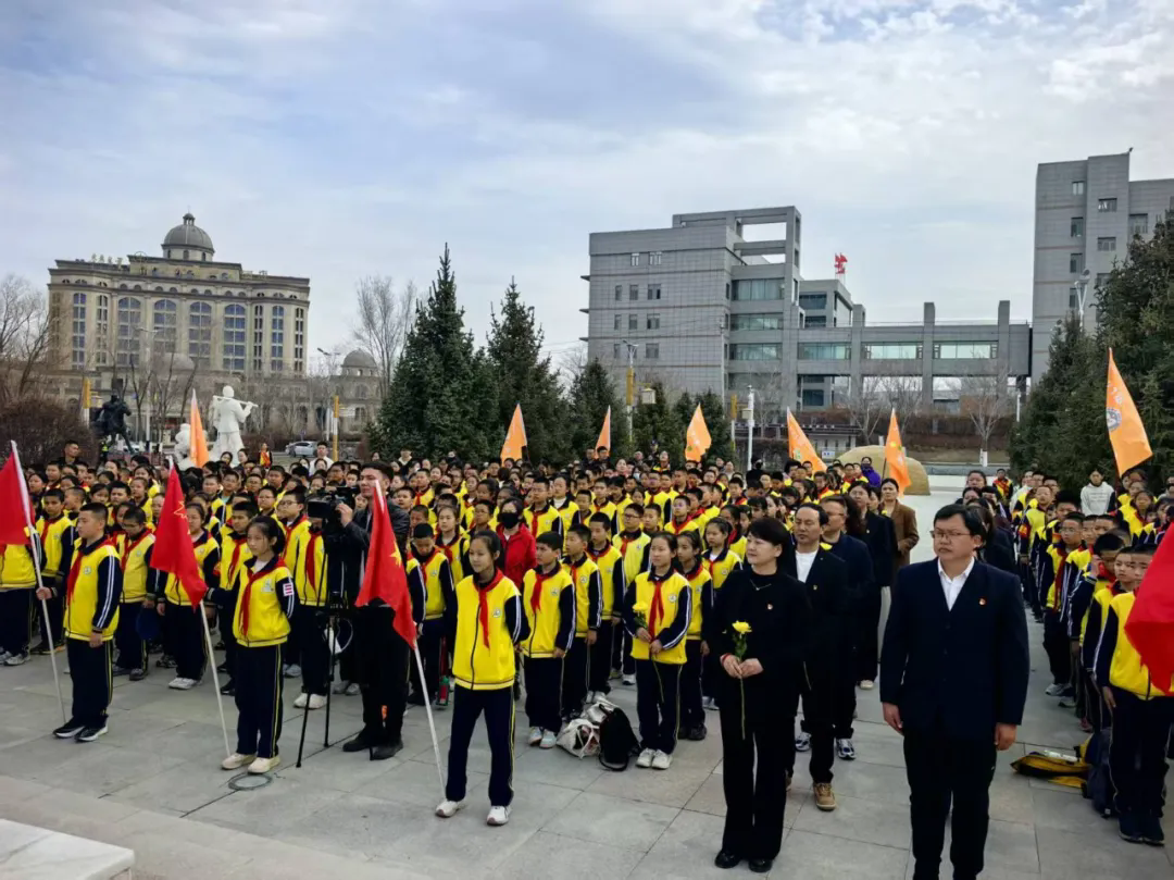 活动启动仪式在博乐市锦绣小学隆重举行,一句句铿锵有力的倡议响彻全场:“丈量家乡热土、感悟红色精神,争做民族团结践行者、红色基因传承者!”。随后,师生们前往博尔塔拉纪念园,在少先队讲解员的细致讲解下,聆听英雄事迹,感悟戍边精神。全体师生肃立致敬、敬献鲜花、集体默哀,深情缅怀为边疆稳定、民族团结作出贡献的革命先辈,深刻体悟爱国守边、团结奋进的时代意义与精神内涵。