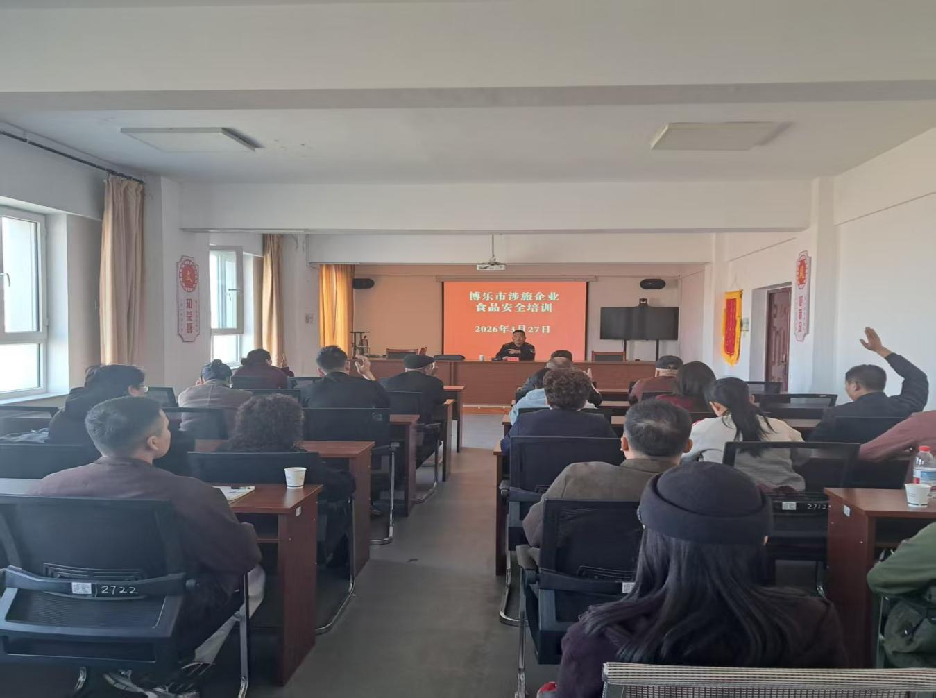 近日,博乐市市场监督管理局在市文旅局二楼会议室组织开展了涉旅游企业食品安全专题培训,辖区旅游景区餐饮、团餐接待单位等38名负责人及食品安全管理人员参训。