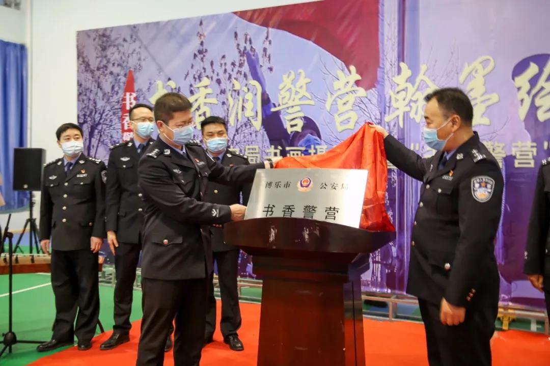 揭牌仪式前,博乐市副市长,市党委政法委副书记,市公安局党委书记、局长杨曦为此次活动致辞:在辞旧迎新之时,我们即将迎来首个中国人民警察节。一直以来,市公安局党委高度重视警营文化建设,始终将文化育警作为推动警营跨越发展的内生动力,不断丰富活动内容,创新活动形式,以文化聚人心,以阅读强素质,努力打造学习型公安、文化型公安氛围。2021年,我们将进一步推进警营文化建设,丰富业余文化生活,激发民警甘于奉献的从警激情,能够更好地服务人民、打击犯罪,永远做人民群众的贴心人和忠诚卫士,为全面建设平安博乐作出更大的贡献!