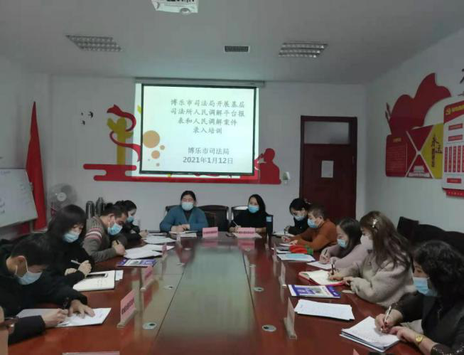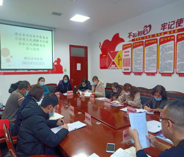 基层办主任斯琴带领大家学习了《中华人民共和国人民调解法》,曹琴给大家具体讲解了司法部司法行政平台的登录、填表到说明并强调了在案件录入过程中的注意事项,例如:案件初审、回访等工作。此次培训为2021年人民调解工作的顺利开展,也为博乐市春节前后社会和谐稳定,基层矛盾化解工作奠定了基础。