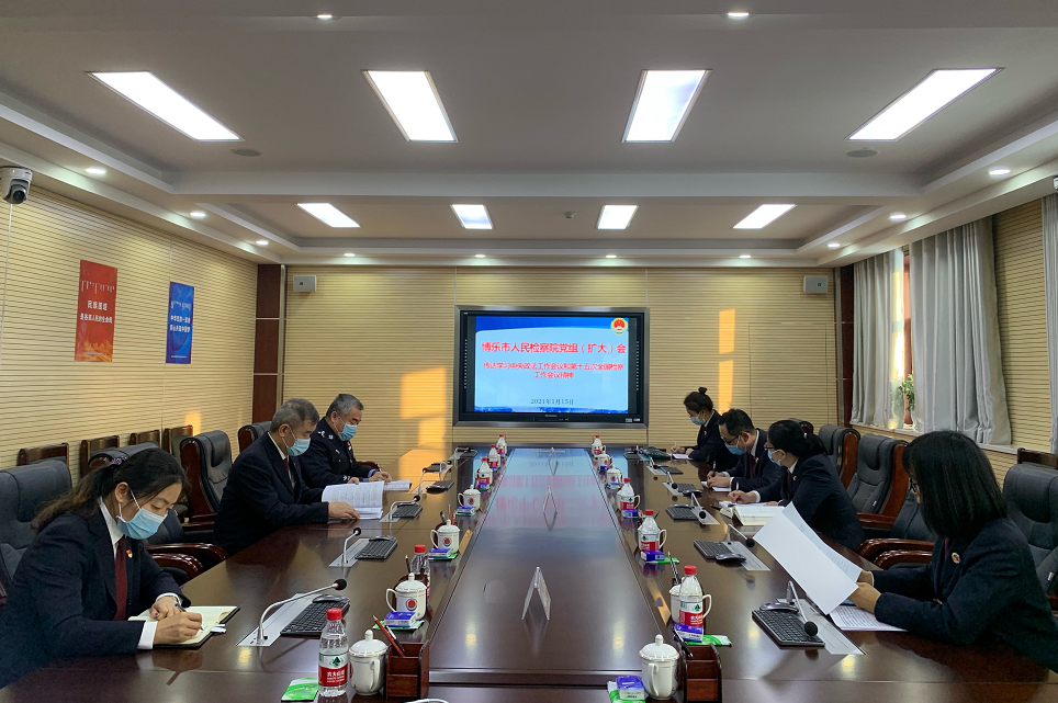 1月15日,博乐市人民检察院召开党组(扩大)会议,传达学习习近平总书记重要讲话指示精神、中央政法工作会议、第十五次全国检察工作会议精神,并结合自治区人民检察院部署要求,为新的一年博乐检察工作发展找准目标定位,注入强大精神动力,开好篇谋好局。博乐市人民检察院党组副书记、检察长原景主持会议,院领导和各部室负责人参加会议。