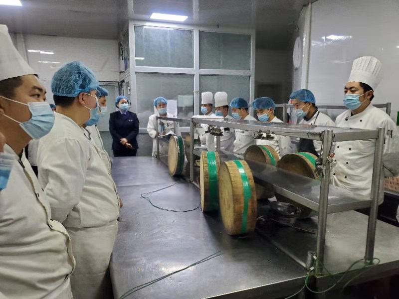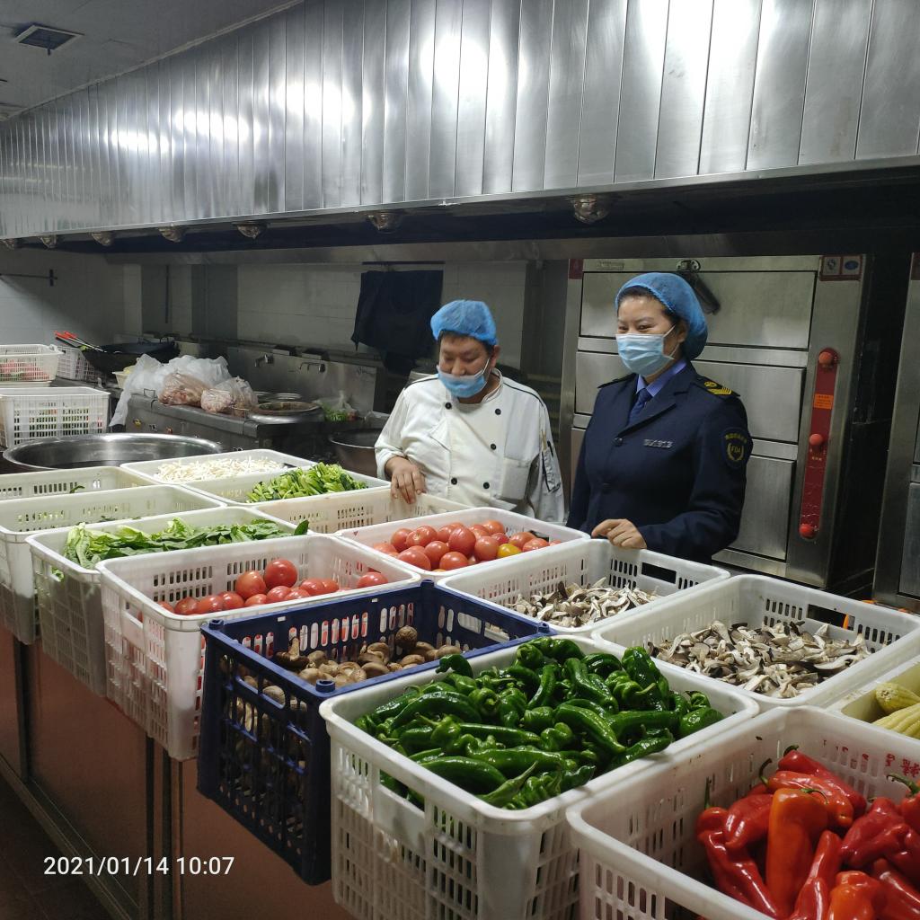 二、强化监督检查。1月13日起,安排专人驻守相关餐饮单位,认真审查供餐食谱,对各餐次食品清洗、加工制作、食品留样、餐饮具洗消保洁、就餐管理、从业人员个人防护等情况进行全程监管,并召开会前动员会,指导、督促餐饮单位严格落实各项食品安全制度和疫情防控措施。