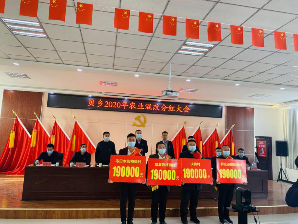 本次分红大会对贝乡及青镇的19个村队和村干部进行了表彰。同时,马那提别克同志在会上对混改并提出几点意见及对2021年混改的期许。