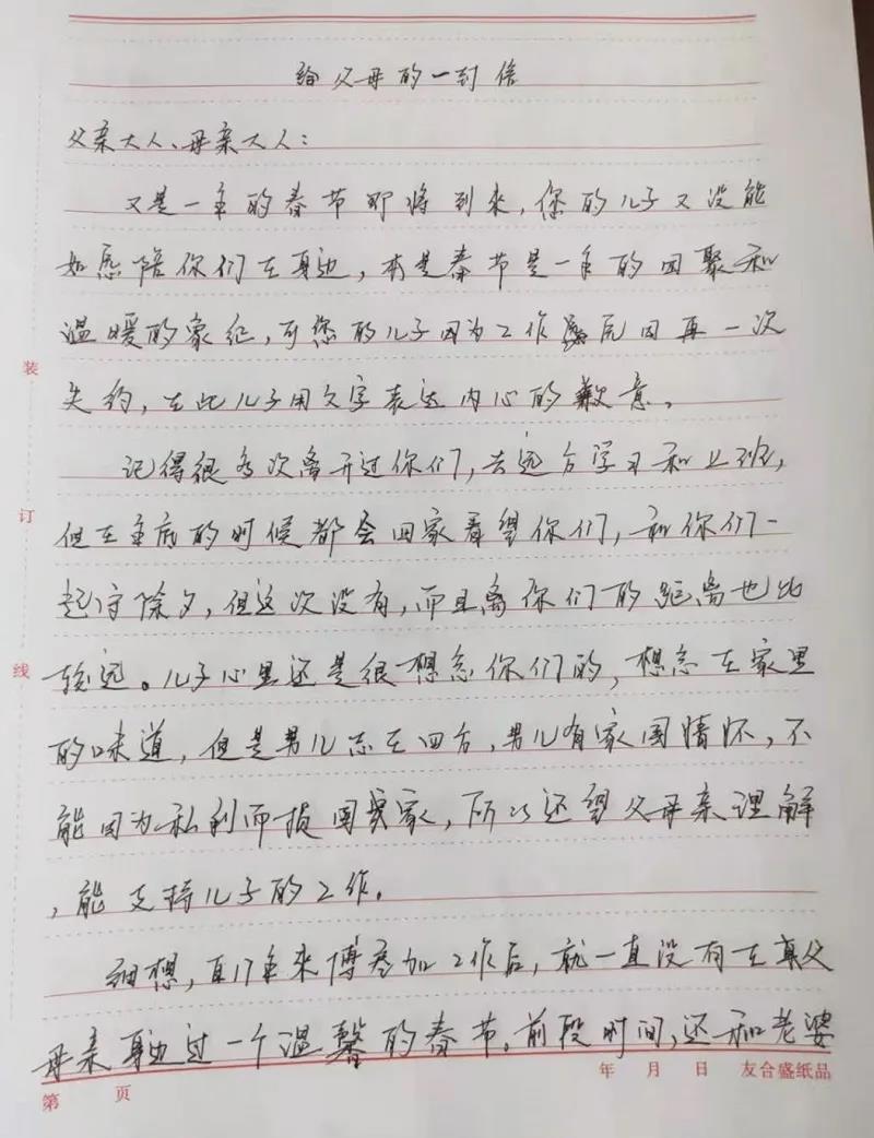有国才有家,选择坚守是为了更好地团聚。就地过年的青年民警们,拿起笔和纸,向家人汇报一年的工作、生活情况,把藏在心底浓浓的爱意,用书信的方式向家人传递。