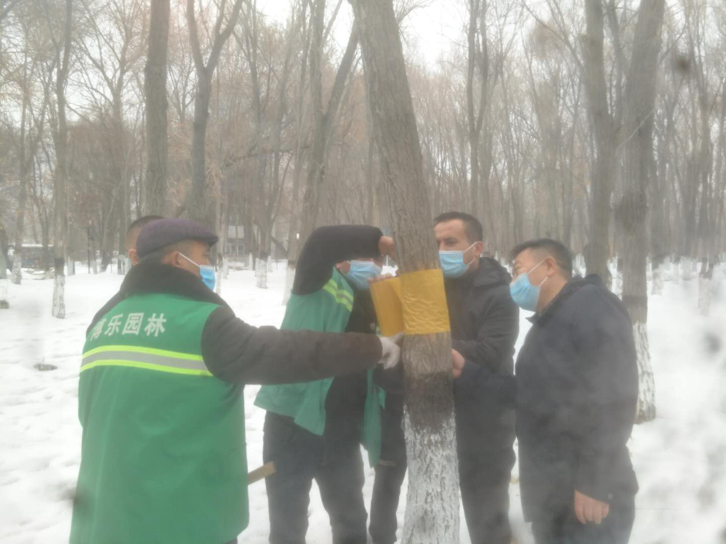 天气渐暖,春尺蠖即将羽化。为了做好今年春尺蠖虫情监测预报工作,博乐市林业有害生物防治检疫站和园林局工作人员抓住虫情监测最佳时期,在博乐市滨河公园、人民公园、精河路等春尺蠖常发生的林分设立标准地,采用在树干缠绕阻隔环粘虫胶带等监测方法、对春尺蠖成虫羽化情况进行监测调查,详细掌握和预测林木被害的时期、程度和范围,为今后的科学施治提供数据支持。