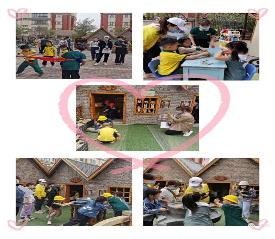 幼儿园共设计14个户外自主游戏。民间作坊里俨然是一个传统手工艺的呈现。木工坊中从设计图纸到实际加工,一个个小工匠们认真创作着;磨坊里碾辣子皮、磨豆浆、轧粗粮,忙的不亦乐乎;看着孩子们认真的小模样,多享受制作的过程啊!