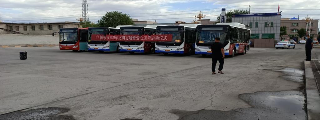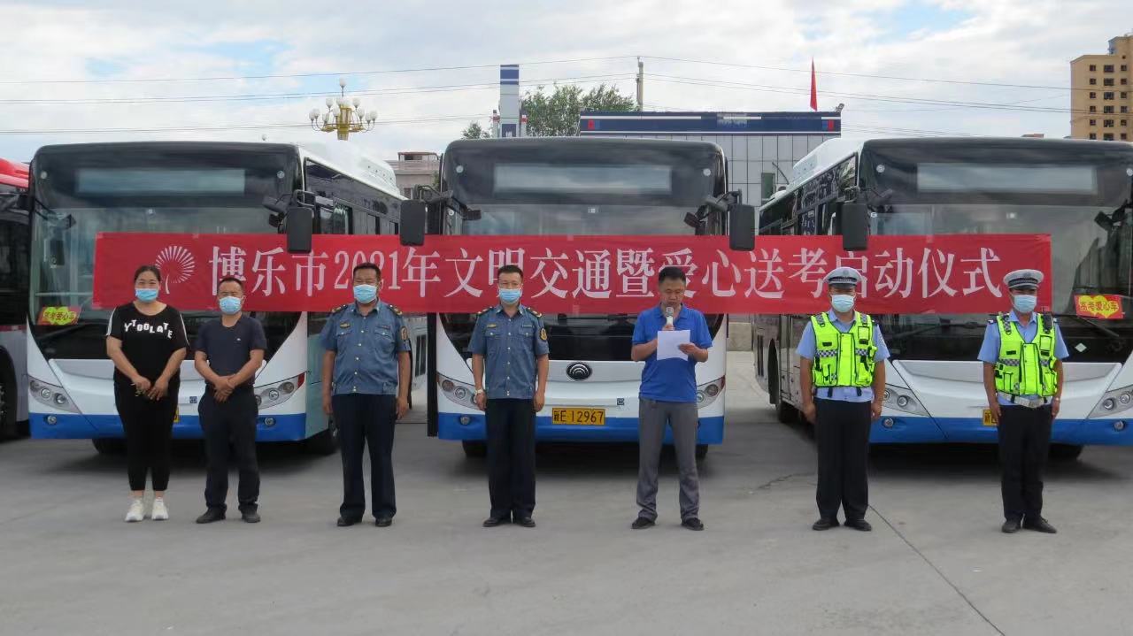 6月5日上午10时,由博乐市交通运输局主办的第十届“2021年度文明交通暨爱心送考”发车仪式在博乐市西站客运站举行。市交警大队、市城市客运交通服务中心、市阳光公交公司、市邦尼有限责任公司等相关单位参加本次发车仪式。